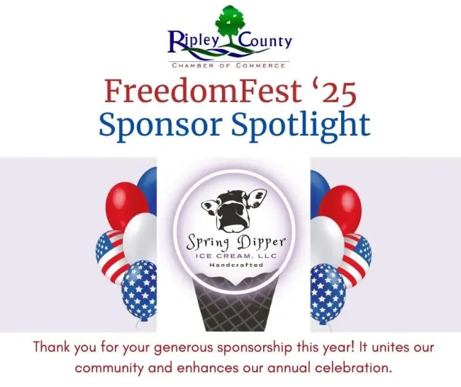 The Ripley County Chamber of Commerce stands as the voice of business while supporting our members' success and taking a leadership role in the development and growth of Ripley County.